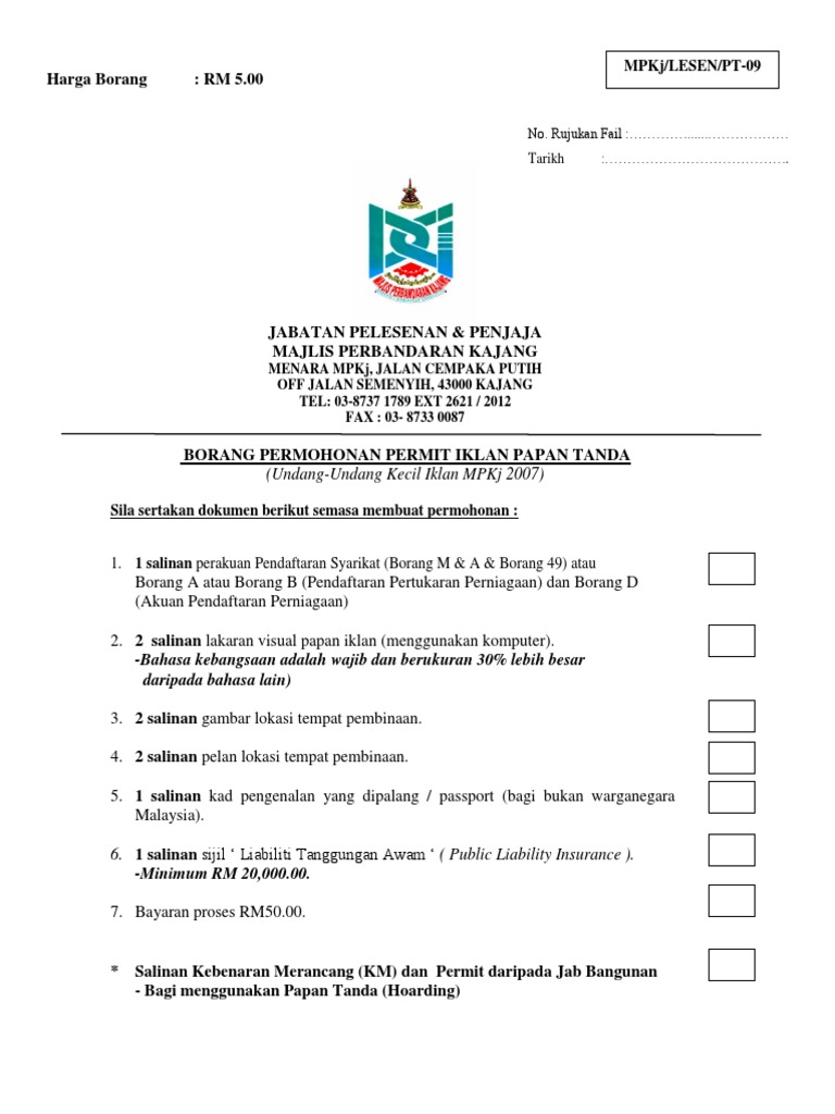 Borang Pendaftaran Di Majlis Perbandaran Kajang